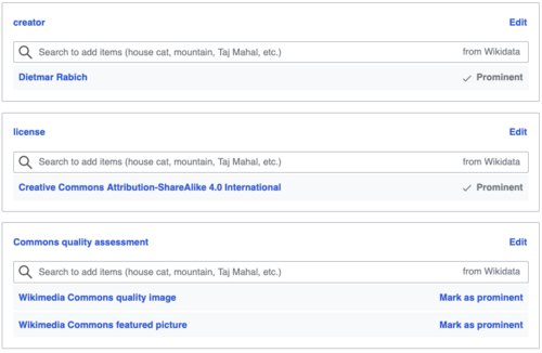 - Add structured data to some high-quality images supported by a Wikimedia chapter, via the ISA Tool. (You must log in with a Wikimedia account here.)