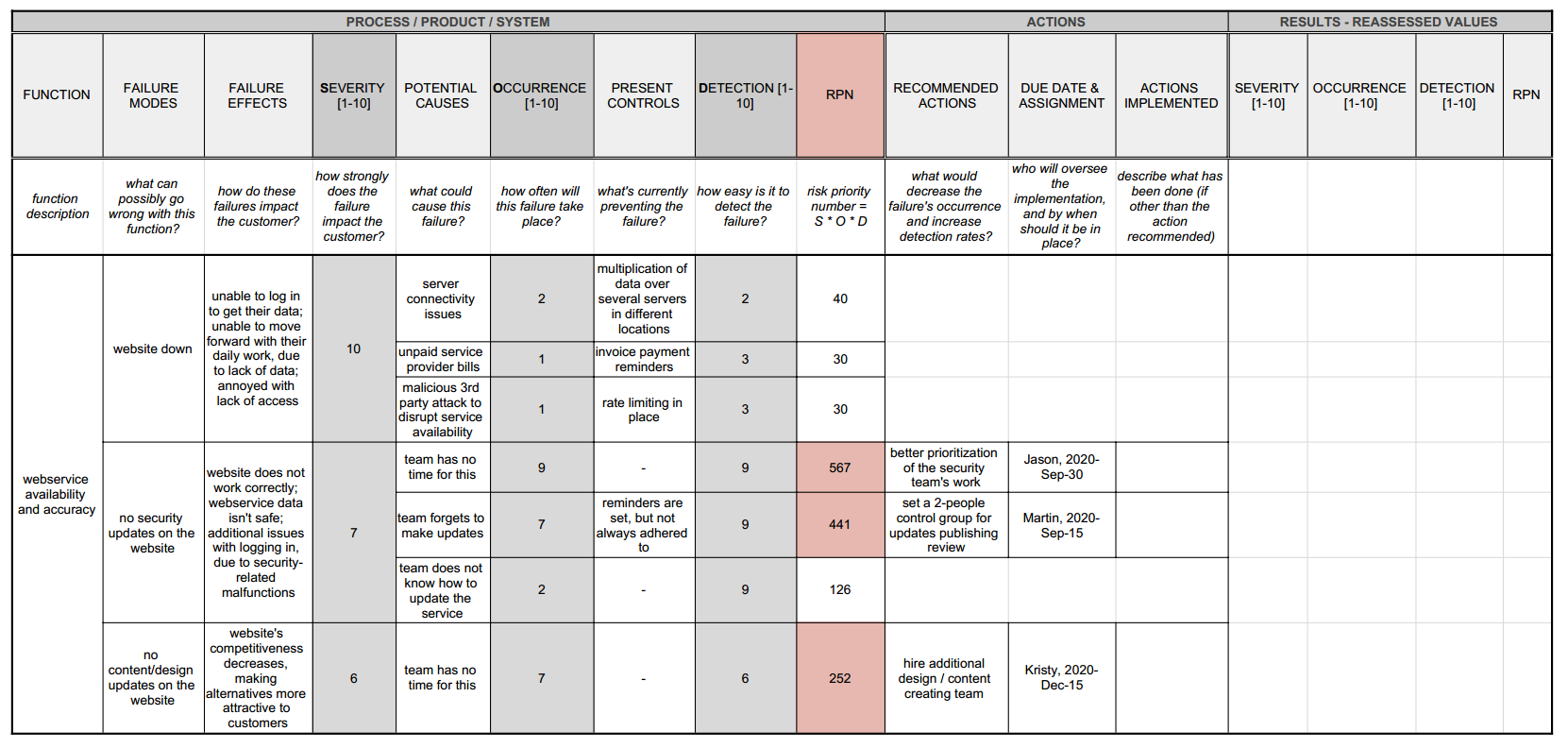Furthermore, your FMEA serves as an imperative piece of documentation that your organization has thoroughly analyzed and evaluated risks and has taken appropriate countermeasures to mitigate them. Having this on record can save your business, should you ever need to prove your duty of care or need to defend against claims for damages to life and limb.