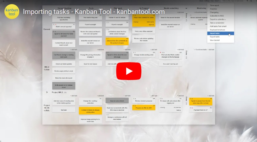 - Export tasks: Download all tasks from your Kanban board to Excel or CSV with just a few clicks. Simply go to the Tools menu and select Export tasks.