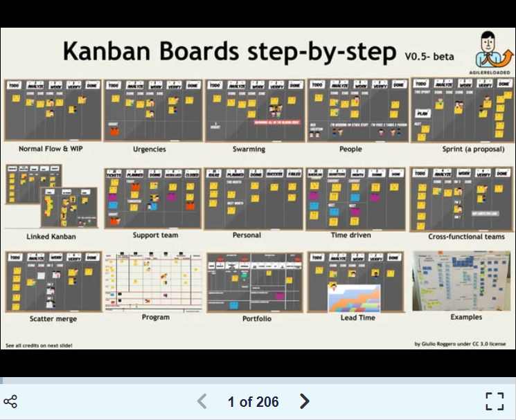 They also help us understand the correct method to add an "urgent task" lane and how to monitor quality of the work done. Furthermore, there are some great examples of making plans with and on a Kanban board, as well as of creating boards associated with our other - more of a time-line type - boards. Lastly, the authors of this pleasant presentation bring us examples of a Personal Kanban, Support Team Kanban, Multi-functional Kanban, Time-Oriented Kanban and others.
