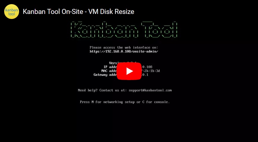 Over time, as you use Kanban Tool On-Site, your available disk space may start to fill up. To resolve this, you can increase the disk space by following the steps outlined in this video guide:
